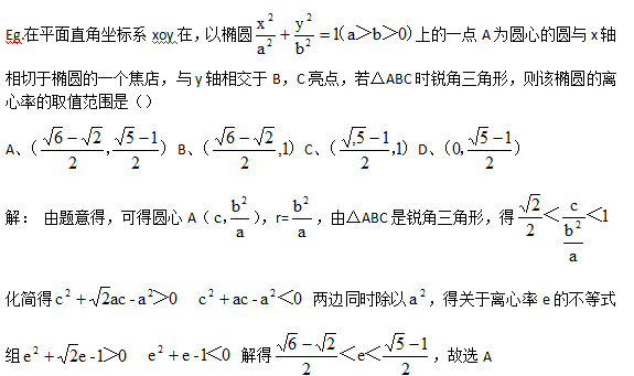 咸宁艺考生在高考数学文化课学习中,有关离心率的取值范围问题,主要通过构造不等式求之,为此,先根据已知条件构造方程组(或)函数,然后考虑用判别式及函数值域等蕴含的条件列出不等式,再解此不等式,最后结合椭圆离心率0<e<1及双曲线离心率e>1的性质,得e的取值范围。