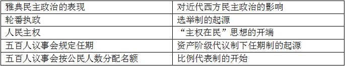 雅典民主政治与近现代西方民主政治的关系是常考命题点,雅典民主政治对近代西方民主政治的影响是高考命题的重要视角之一。因此文化课冲刺复习时需要重点把握以下内容。